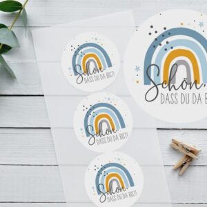 Personalisierte Hochglanz-Aufkleber zur Taufe – Regenbogenmotiv (1 Bogen, 24 Stück) Diese liebevoll gestalteten Aufkleber mit Regenbogenmotiv sind die perfekte Ergänzung für deine Tauffeier! Ob als dekorative Akzente auf Gastgeschenken, für die Tischdekoration oder als persönliches Highlight auf Einladungen – sie verleihen jedem Detail einen besonderen, individuellen Touch. ✨ Produktdetails: ► 1 Bogen mit 24 Aufklebern…