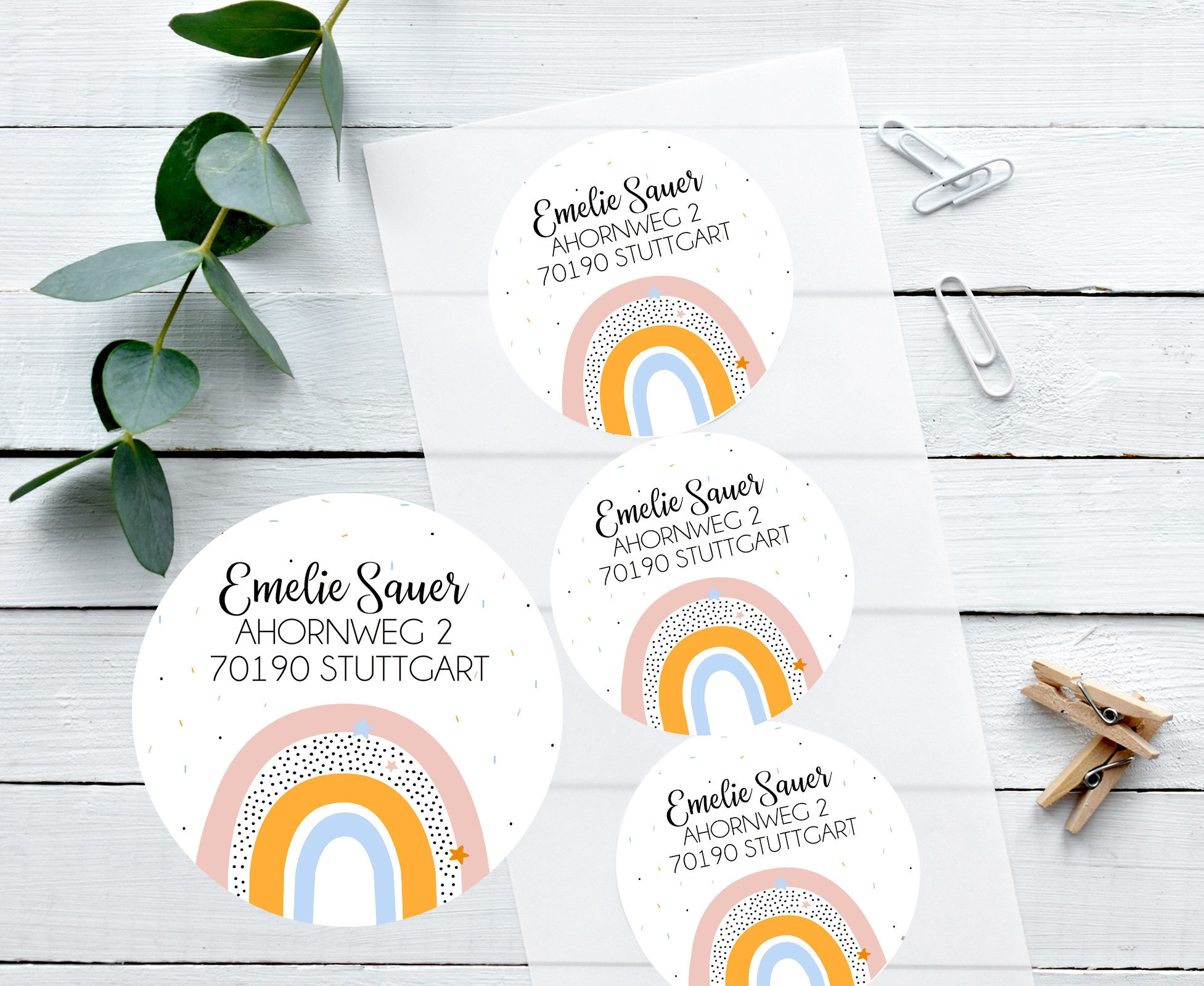 Adressaufkleber mit Regenbogen, 24 Adressaufkleber, Aufkleber zum Umzug, Aufkleber mit Regenbogen, personalisierte Aufkleber, Sticker
