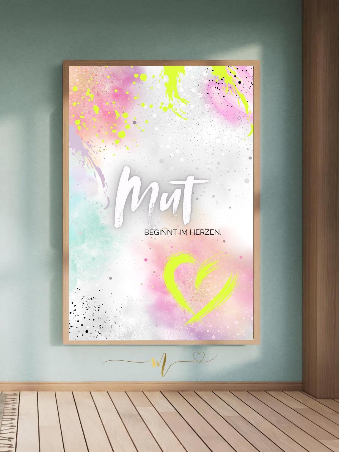 Artprint, Wanddekoration Poster in abstraktem Design mit Spruch „Mut“ – Neon Design, leuchtende Wanddeko, Poster, ausgefallenes Wandbild