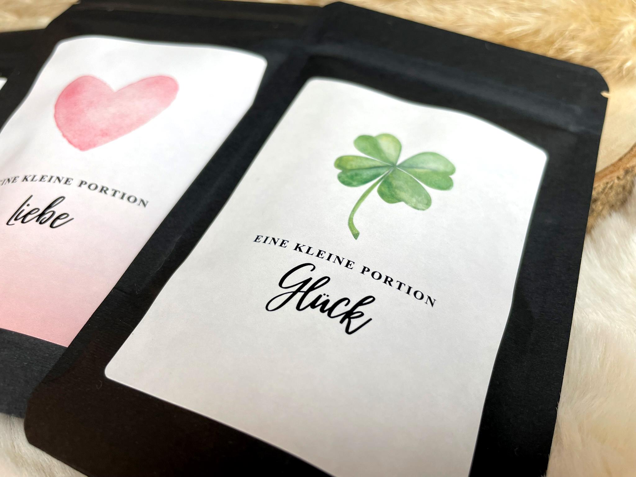 Eine Portion Glück – Tee – kleines Mitgebsel, Geschenk, Glücksbringer, Geschenk für Patienten, Gute Besserung, Krankheit, Mutmacher, Glück