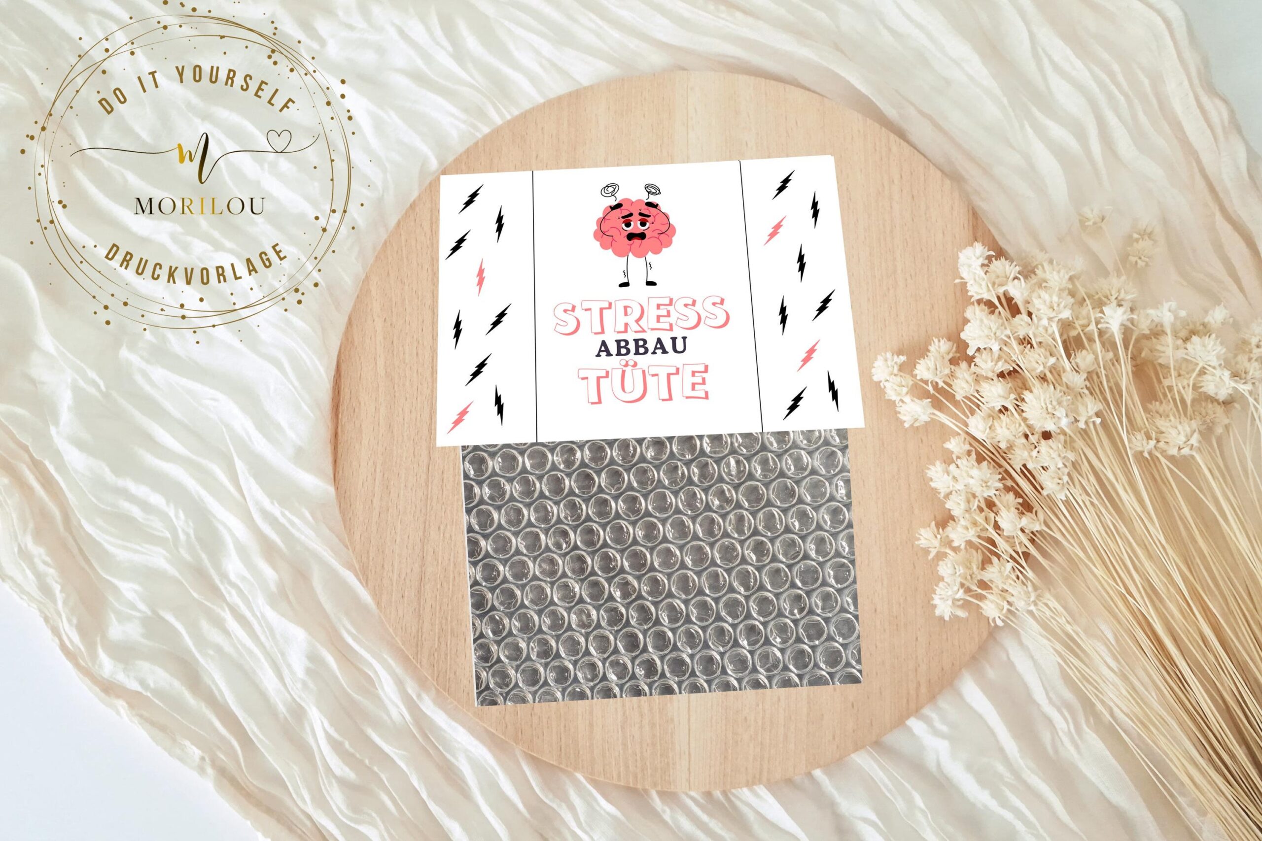Mit unserer liebevoll gestalteten PDF-Druckvorlage kannst Du im Handumdrehen dieses witzige Gag-Geschenkütchen gestalten – perfekt als kleines Geschenk für Gestresste, die dringend eine Auszeit nötig haben. Die Vorlage trägt den charmanten Spruch „Stressabbautüte“ und eignet sich ideal, um Tütchen mit Luftpoltsterfolie zu befüllen.