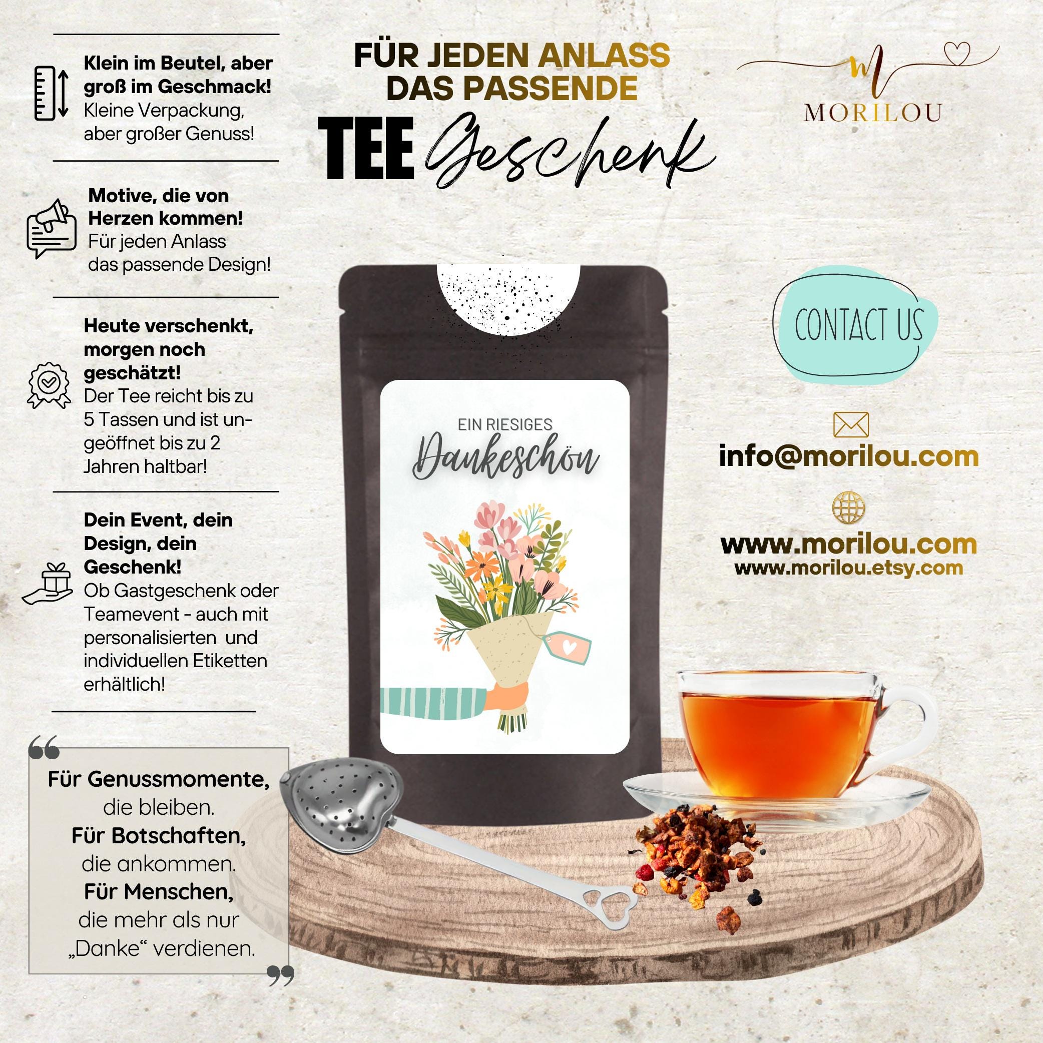 Du erhältst das Mini-Teepäckchen mit dem Etikett wie auf dem ersten Produktbild dargestellt.