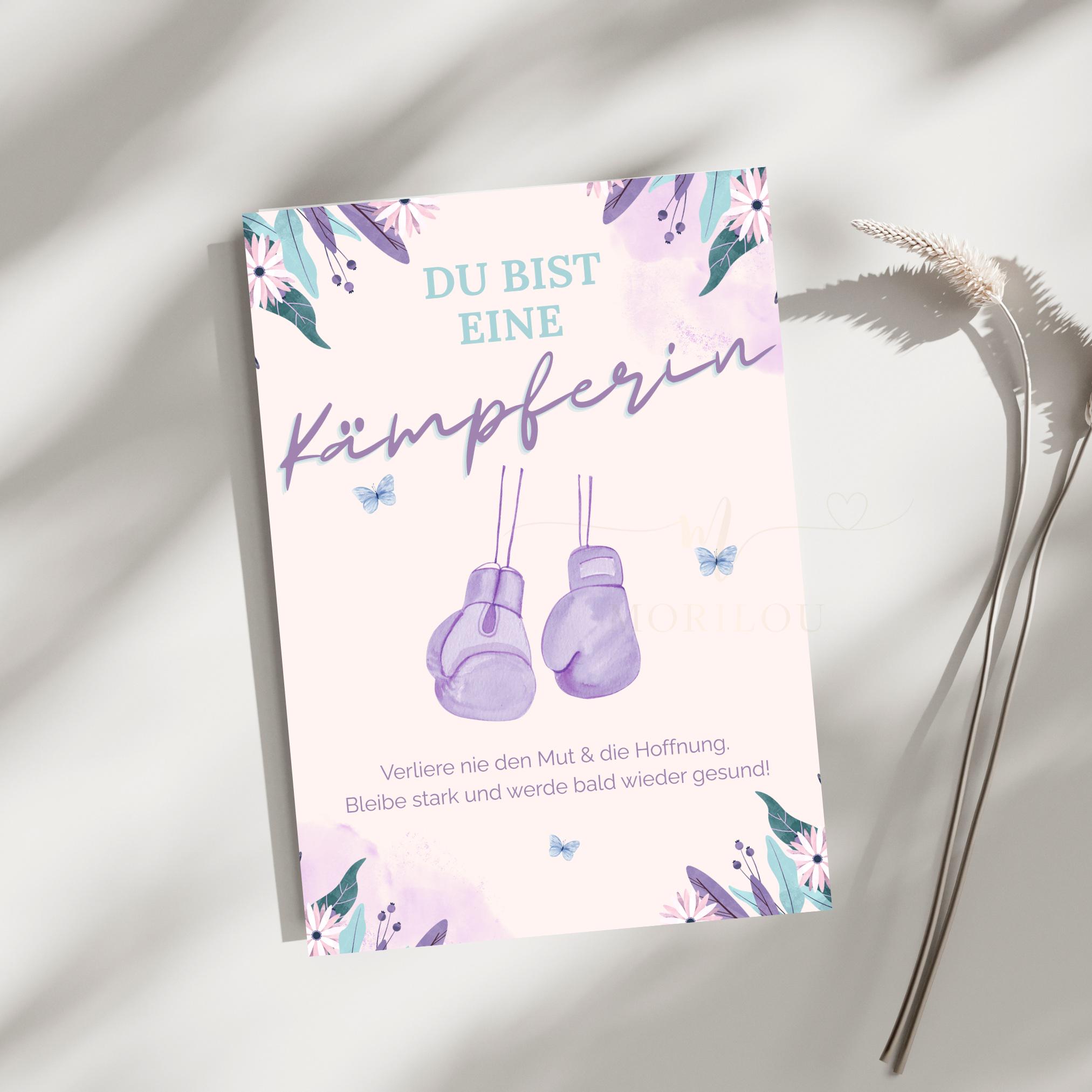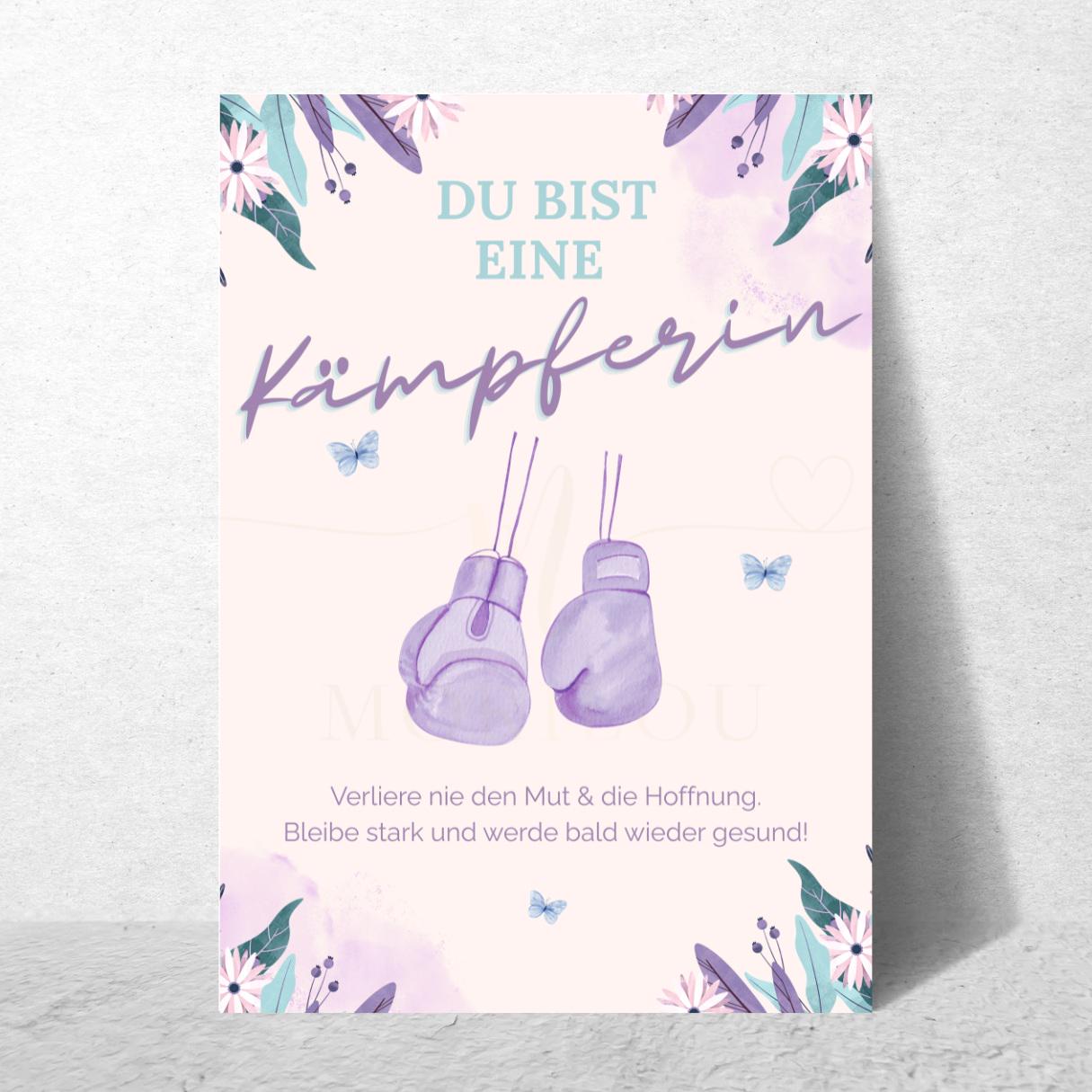 Postkarte Du bist eine Kämpferin, Karte für Kranke, Krebs, Krebskrankheit, Hoffnung, Motivation, aufbauende Worte, Gute Besserung