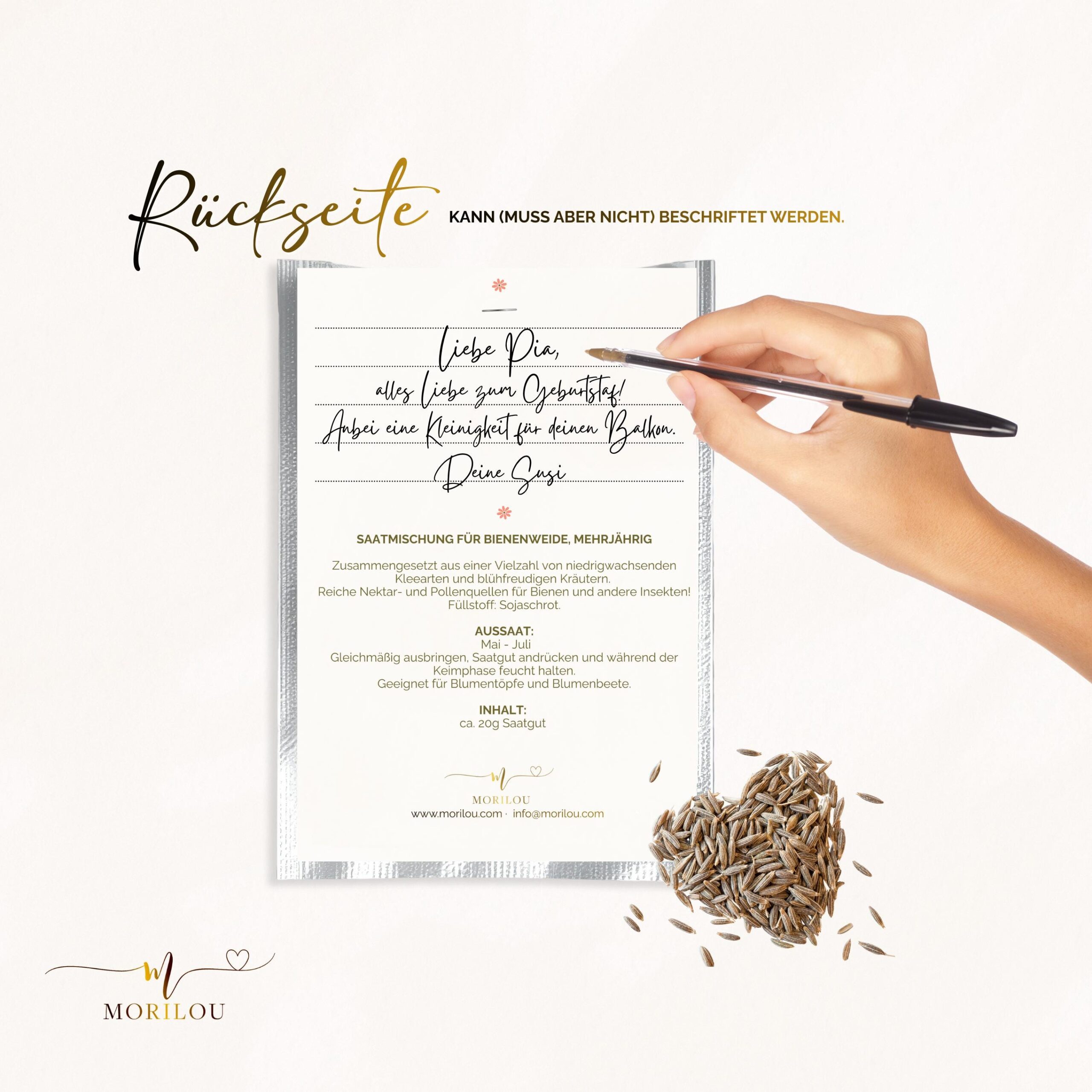 🌸 Anleitung & alle Pflichtangaben auf der Rückseite der Tüte