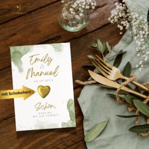 💖 Schön, dass du da bist! Dieses Gastgeschenk verleiht eurer Feier eine persönliche Note. Macht euren großen Tag noch unvergesslicher mit diesen personalisierten und handgemachten Gastgeschenk-Karten mit kleinem Schokoherz zur Hochzeit. Perfekt als Tischdeko, Platzkarte oder süßes Dankeschön für eure Gäste. Jede Karte ist handgefertigt, individuell bedruckt und mit einem kleinen Schokoherz geschmückt – ein…